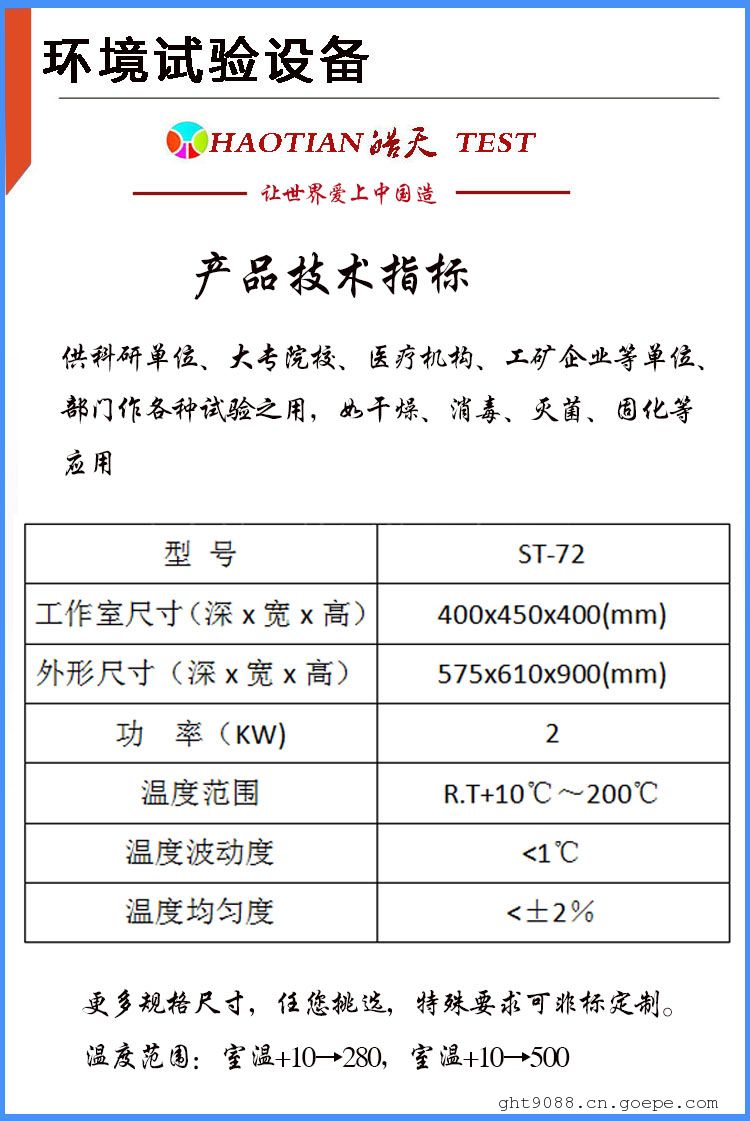 - 广皓天高温干燥箱家电领域测试产品ST-72